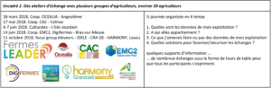 Dans le cadre du projet Multipass, nous avons organisé avec différents partenaires plusieurs ateliers en 2018 (Voir Encadré 1) dans diverses régions avec de petits groupes d’agriculteurs, diversifiés dans leurs productions, tailles d’exploitations et plus ou moins engagés dans une digitalisation de leur exploitation, pour identifier les opportunités et craintes sur la question des échanges de données exprimées par les agriculteurs eux-mêmes. Voici les principaux enseignements.