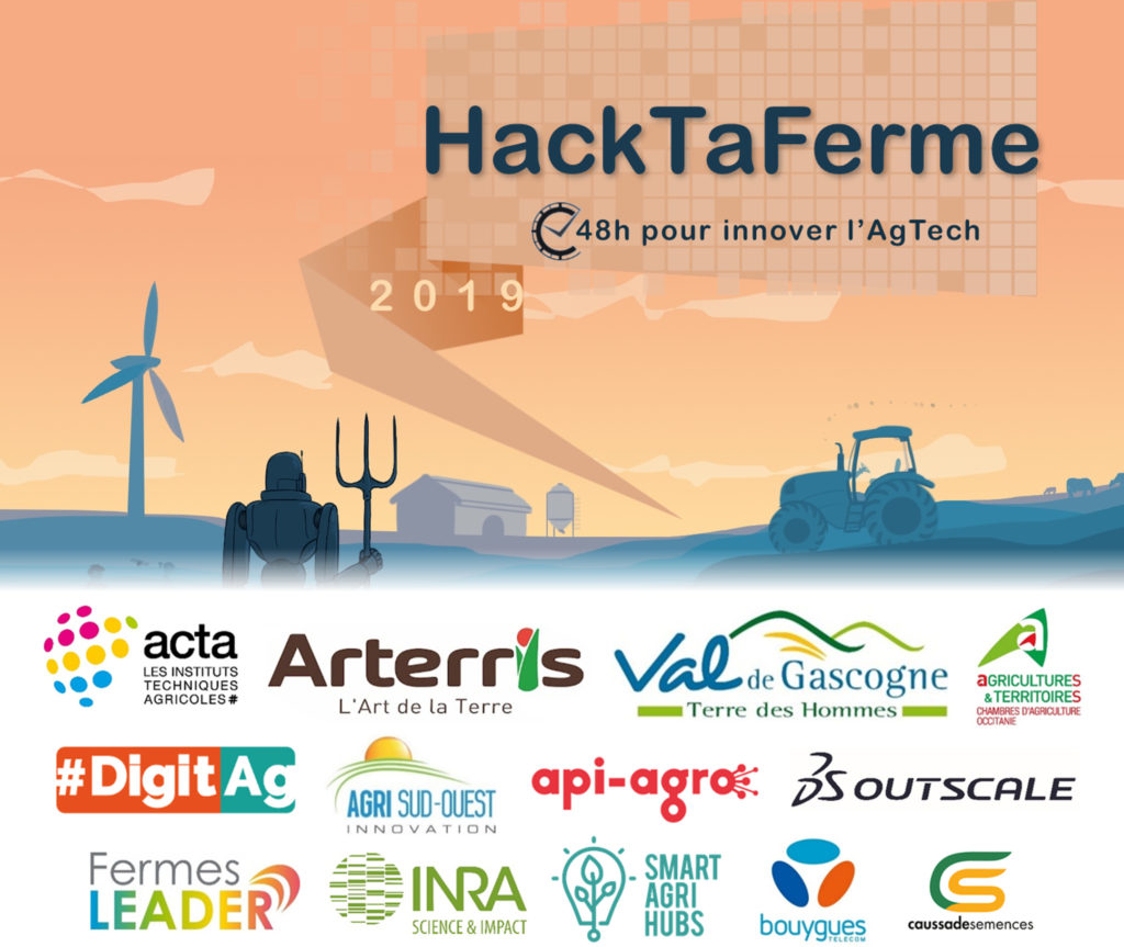 HackTaFerme 2019 est organisé par l’Acta avec les groupes coopératifs Arterris et Val de Gascogne et les Chambres d’agriculture d’Occitanie et du Gers. L’événement bénéficie du soutien de #DigitAg, Agri Sud-Ouest Innovation, API-AGRO, 3DS Outscale, Fermes Leader, INRA , INRA Transfert, Smart Agri Hubs, Bouygues Telecom et Caussade Semences.