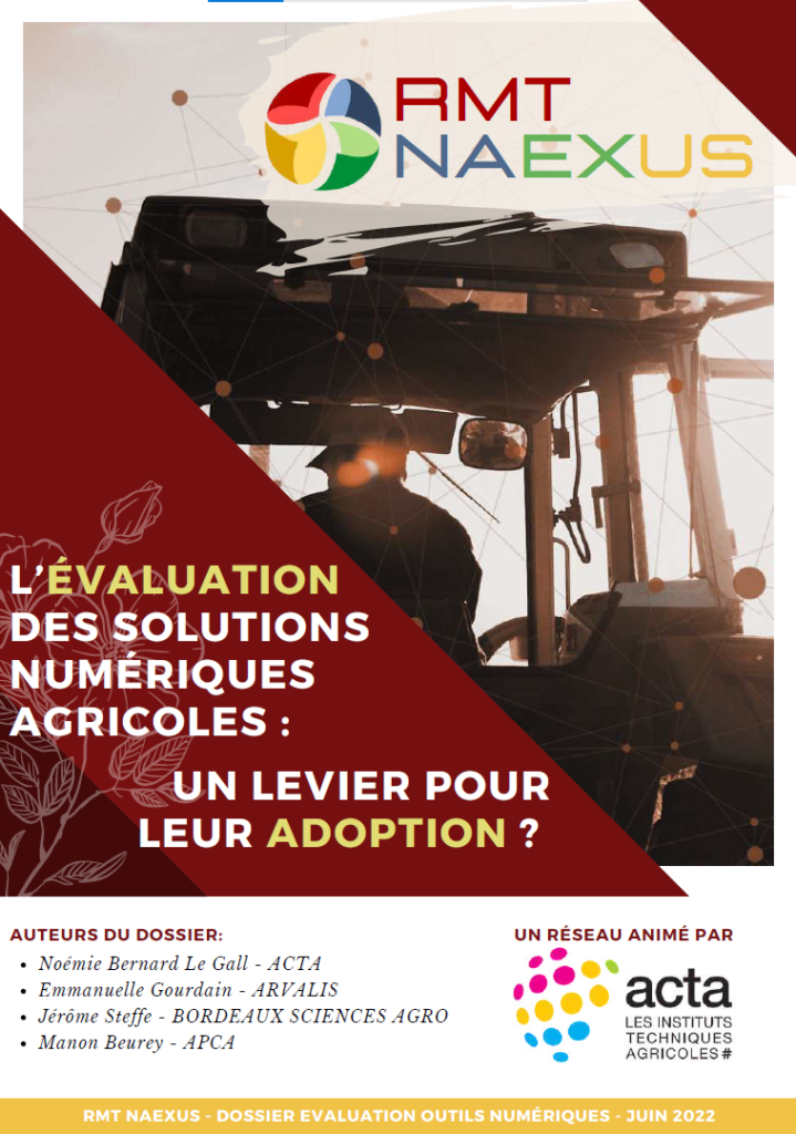 Dans ce cadre, le RMT NAEXUS a réalisé un dossier qui synthétise plusieurs visions de l’évaluation des solutions numériques, afin de proposer quelques éléments de réponse aux questions les plus souvent posées lorsque l’on aborde le thème de l’évaluation : comment se déroule le processus d’adoption d’une solution numérique ? que faut-il évaluer pour qu’une solution soit largement adoptée ? Qu’attendent les différents utilisateurs finaux potentiels de cette évaluation ?