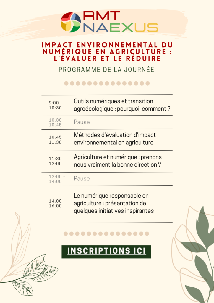 Le RMT NAEXUS organise un webinaire le 23 mai prochain sur la thématique de l’impact environnemental du numérique en agriculture : comment l’évaluer et le réduire.
